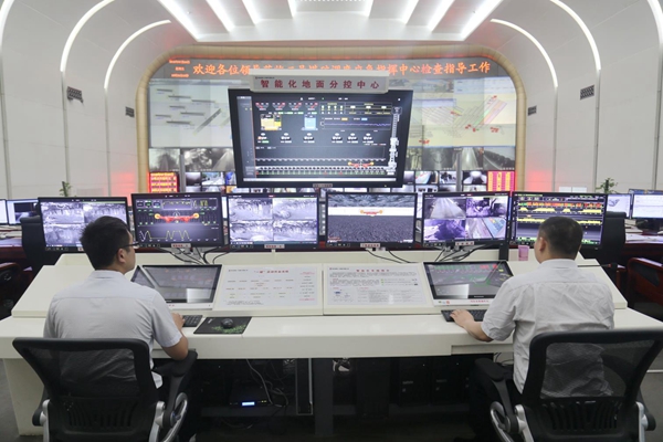 在曹家灘公司,單月快掘速度達到2200m、單面單班生產(chǎn)達到3萬噸、一節(jié)火車車廂裝滿僅需54秒、一輛汽車裝滿煤僅需要40秒、一鍵就可啟動順逆煤流。